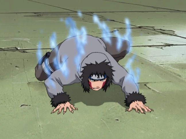 Kiba ist in dieser Phase ein Gennin, der sich auf Techniken des Inuzuka-Clans spezialisiert hat. Seine Haupttechniken sind: «Tierpassage» (Jinju Konbi Henkai), bei der er auf allen Vieren steht und sich mit Akamaru bewegt, wodurch seine Geschwindigkeit stark zunimmt, und «Mensch-Tier: Nachahmung» (Jinju Konbi Bunshin no Jutsu), bei der Akamaru zu einer exakten Kopie von Kiba wird. Ihr gemeinsamer Spezialangriff ist «Doppelkopf-Wolfangriff» (Gatsuga), bei dem sie zu einem zweiköpfigen Wolf verschmelzen und sich drehen, wobei sie eine Reihe vernichtender Schläge austeilen. Außerdem verwendet Kiba die Technik «Tierpassage: scharfer Stahl» (wenn Akamaru zu einer Waffe wird) sowie grundlegende Ninjutsu wie Klone oder Austausch, jedoch selten. Bei der Chunin-Prüfung zeigte er, dass er «Gatsuga» mit großer Kraft einsetzen kann, danach jedoch stark erschöpft ist. Bei der Mission zur Rückholung von Sasuke wurden seine Techniken für Aufklärung und zum Durchbruch der feindlichen Verteidigung eingesetzt.