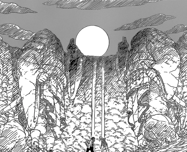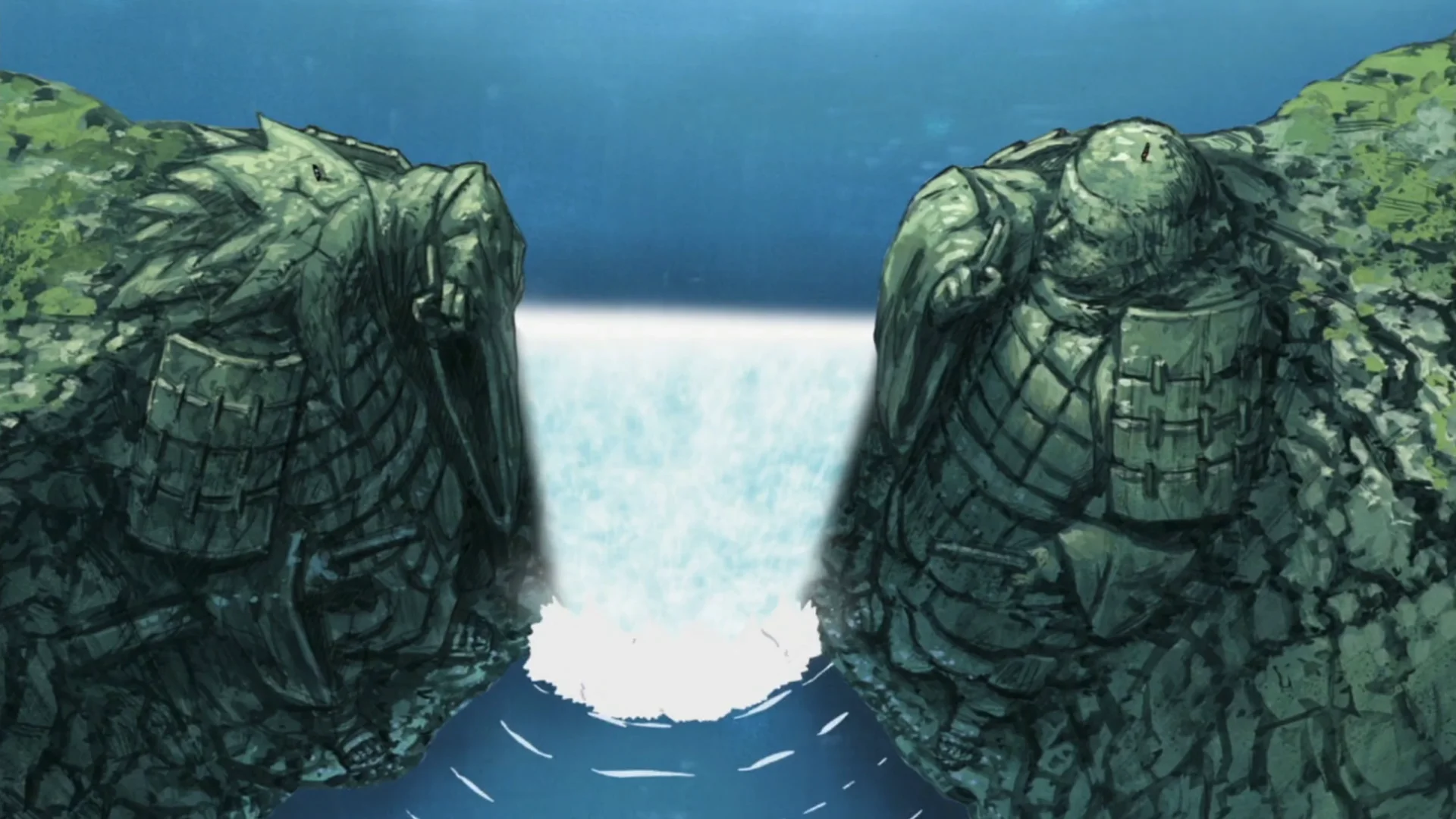 Долина Завершения — это обширная каньонообразная низина, по дну которой протекает широкая река. Над водой по обеим сторонам возвышаются исполинские скальные изваяния, высеченные в форме гигантских воинов, сложивших руки в печатях. Вода срывается вниз многочисленными водопадами, создавая вечный шум и мелкую водяную взвесь в воздухе. Плоский уступ у подножия статуй служит своеобразной ареной, окруженной неприступными стенами скал. Это место производит впечатление суровой, величественной и одновременно безмолвной мощи, застывшей в камне.