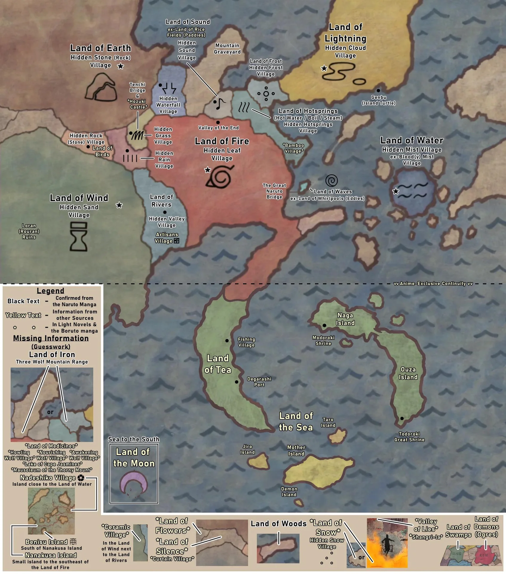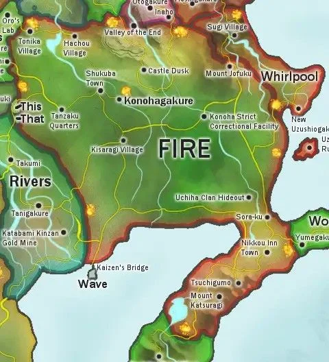 Конохагакуре, или Деревня Скрытого Листа, является домом для многих могущественных кланов, включая Учиха, Хьюга, Нара, Акимичи, Яманака и других. Именно здесь проходит большая часть событий оригинальной серии. Страна Огня играет ключевую роль в поддержании баланса сил между великими державами, часто выступая посредником в конфликтах и инициатором альянсов.