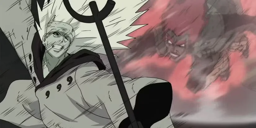 この瞬間、ガイは恐怖のひとかけらも見せない。彼は悟りを開いたような静けさと、我武者羅の決意に包まれている。彼の人生全体——忍術ひとつ使えない不器用な忍者から「木ノ葉の緑の野獣」になるまで——は、この一秒に集約される。第八門を開くとき、彼は自分と同じように門を開いて自分を犠牲にし、七人組の霧の忍者から息子を守った父、マイト・ダイのことを思い出す。ガイは、父の運命を繰り返していることを悟り、それに力を得る。