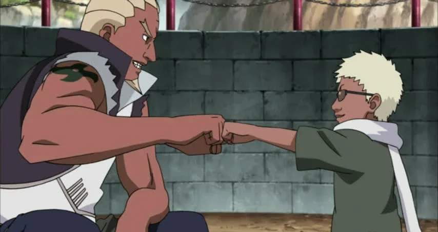 In his youth, Bee already exhibits the same vitality and assertiveness he shows in adulthood, but his manner of carrying himself is only beginning to form. He is incredibly talented, a fact even his sworn brother Ay acknowledges, and is capable of performing tasks meant for a team on his own. Bee faces prejudice from fellow villagers who fear him as a jinchuriki, but he responds not with bitterness, but with a smile and perseverance—he wants to become the best vessel so as not to let his brother down politically. He is sincerely attached to Ay, calls him brother, and strives to justify his trust. Despite his outward simplicity, Bee possesses a sharp mind and can quickly analyze the battlefield. His famous love for rap is already budding, though in youth it is not as pronounced as in later years. He easily forgives those who tried to harm him and bears no grudge against Motoi, who nearly killed him seeking to avenge his father.