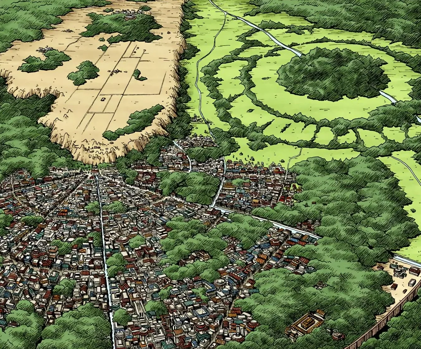 Деревня Скрытого Листа — одна из пяти великих шиноби-деревень и крупнейшее поселение в Стране Огня. Расположенная в центральной части страны на территории около 300 км², она окружена густыми лесами и возвышается у подножия горы Хокаге, что обеспечивает ей естественную защиту и живописные пейзажи. Умеренный теплый климат региона способствует богатой растительности и комфортным условиям для жизни.