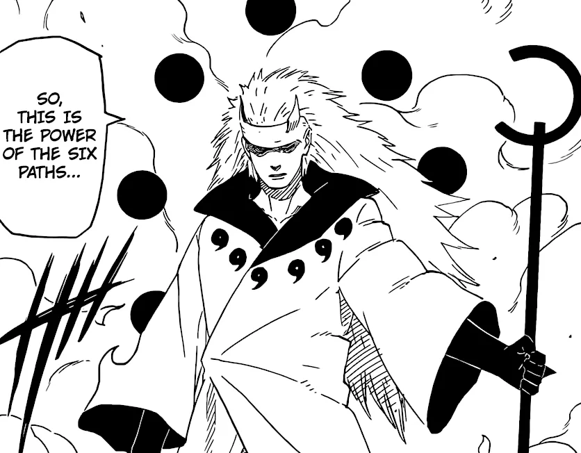 W Trybie Mędrca Ścieżek Sześciu ninjutsu Uchihy Madary osiąga absolutny szczyt, wykraczając daleko poza ludzkie ograniczenia. Stawszy się Jinchūrikim Dziesięcioogonowego demona i zdobywając moc Mędrca Ścieżek Sześciu, Madara uzyskuje dostęp do technik poziomu boskiego, niedostępnych nawet zwykłym posiadaczom Rinnegana.
