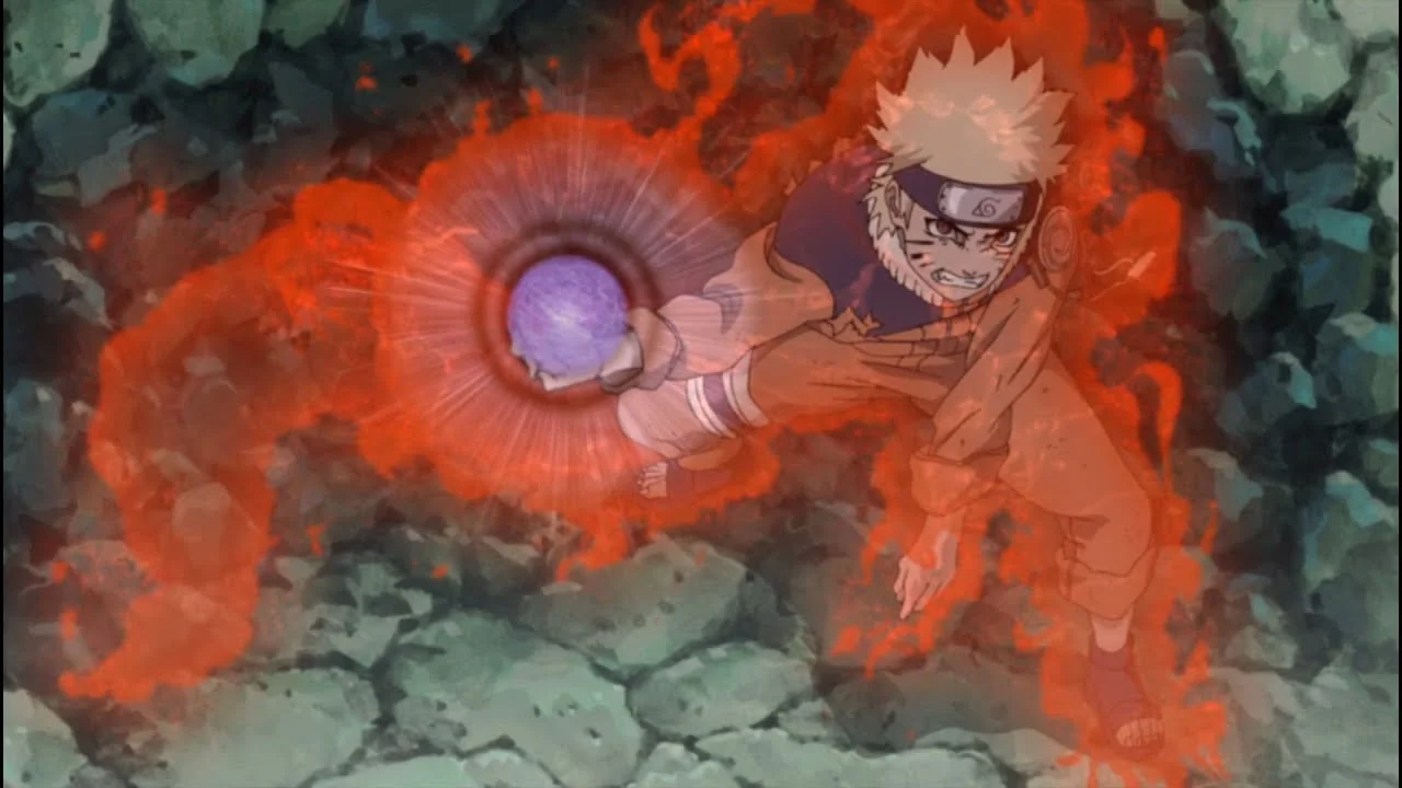 Базовый арсенал остаётся тем же: массовые теневые клоны, Расэнган (требующий клона-помощника), призыв лягушек. Однако благодаря постоянному подпитке чакрой Курамы Наруто может создавать клонов в разы больше, а Расэнган использовать чаще и с большей разрушительной силой. Стабильность техник падает — они становятся грубее, но давление на противника многократно возрастает. Призыв Гамабунты теперь происходит быстрее и держится дольше. Стихийных ниндзюцу по-прежнему нет, но даже базовые приёмы в этом состоянии сравнимы по мощи с атаками дзёнинов.
