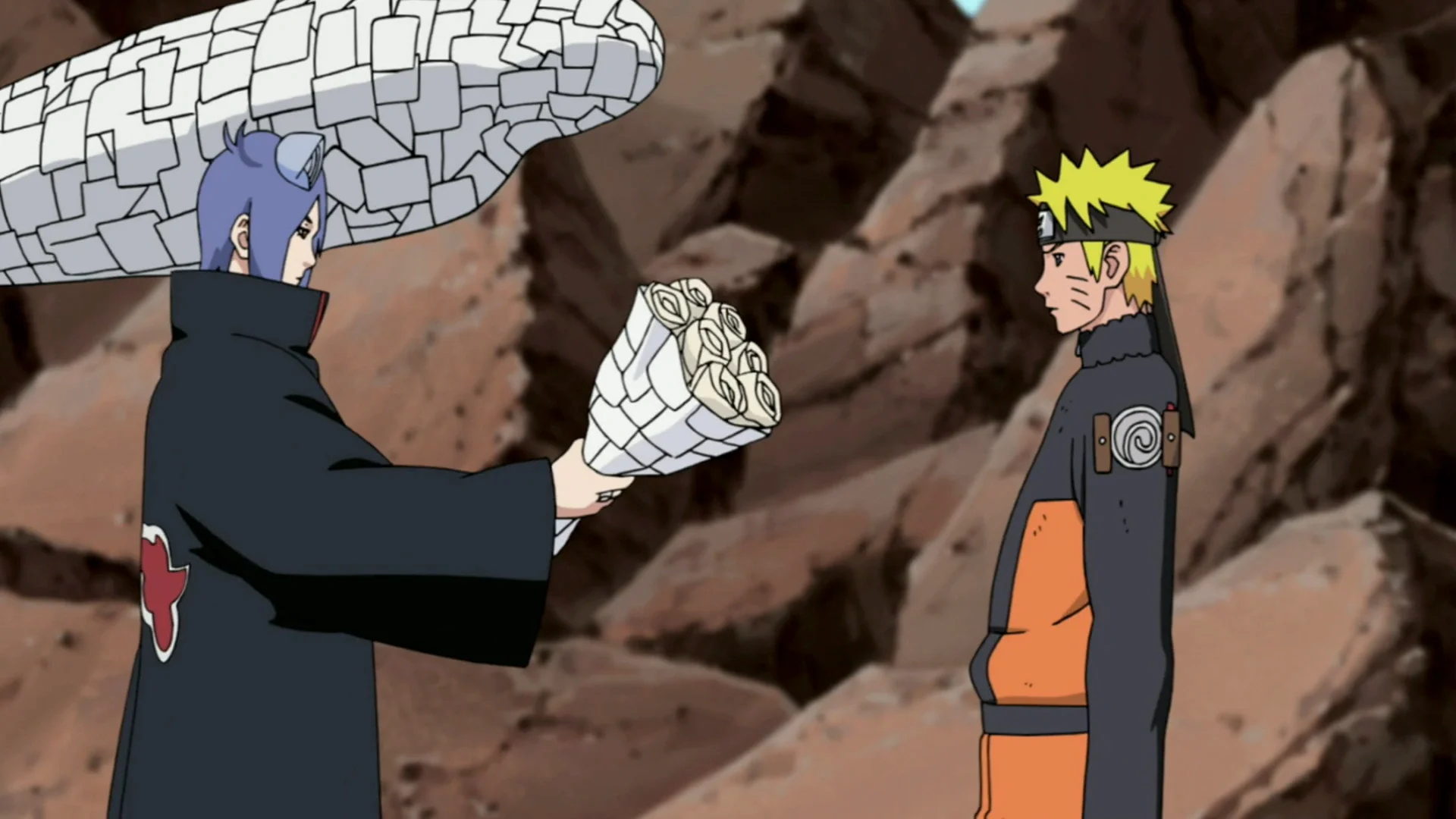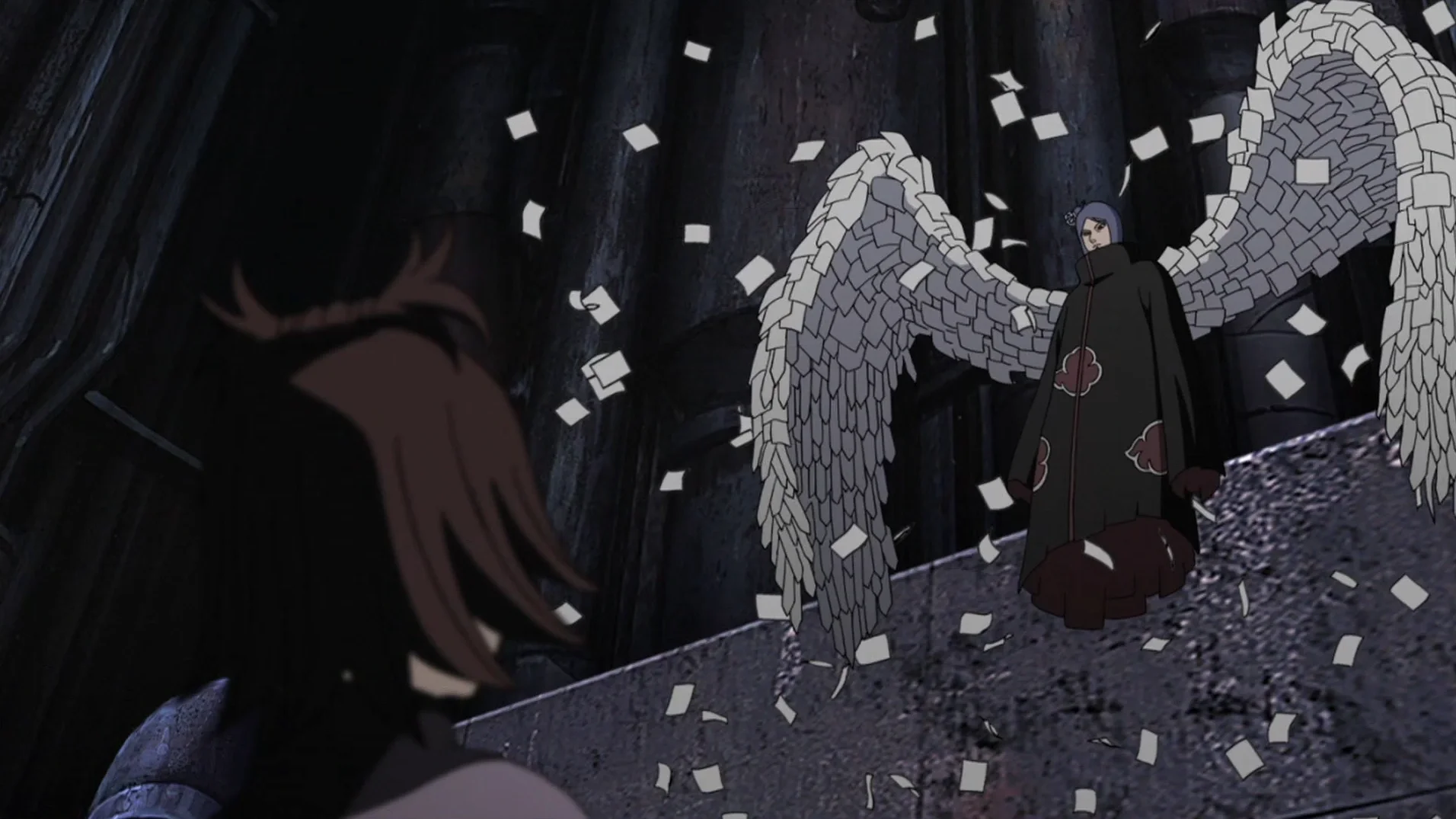 Куноичи из деревни скрытого дождя (Амегакуре) и единственная женщина в организации «Акацки». Владеет уникальными техниками бумажного дзюцу, позволяющими трансфорировать тело в бумагу для полёта и атак. Бывшая соратница детства Яхико и Нагато, после их смерти покинула организацию.