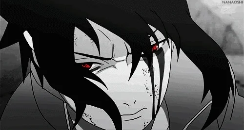 Саске в период обладания Мангекьё Шаринганом — это молодой человек, полностью погружённый во тьму собственной одержимости. Холодный, замкнутый и отчуждённый, он демонстрирует крайнюю степень эмоционального отчуждения от окружающих, считая большинство людей инструментами для достижения своих целей. Гордыня клана Учиха достигла в нём апогея — Саске искренне верит в собственное превосходство и считает, что право на справедливость принадлежит лишь тому, кто обладает достаточной силой.