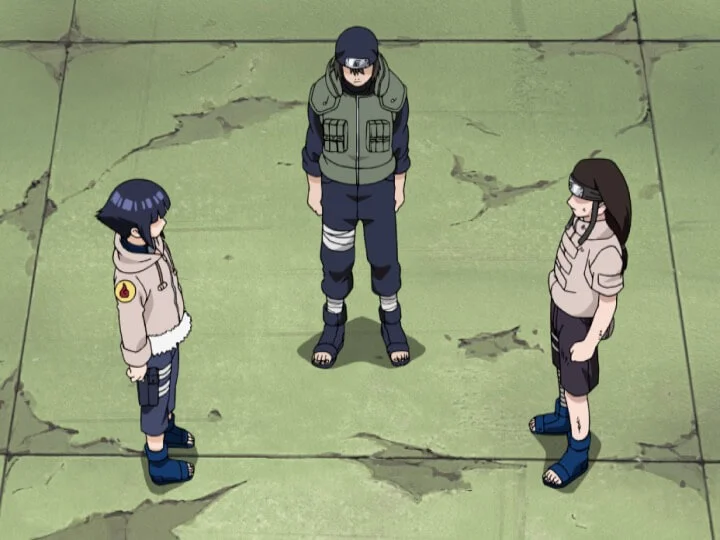 У молодості Хінаты Хьюга — надзвичайно засумнівальна і неупевна в собі дитина. Вона страждає від низької самооцінки, постійно сумніваючись у своїх здатностях і боячись підведіть навколишніх. Їй м'який і добрий характер часто сприймається як слабкість, особливо в суровій обстановці клану Хьюга, де цінуються сила та рішучість.