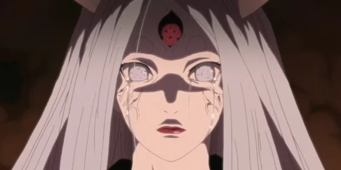 大筒木辉夜是一个双重性格的存在,她最初的善良被新获得的神力的重压和对人类的深深失望所掩埋。在她内心深处,她对这片土地一直怀有眷恋,甚至爱上了一个凡人的统治者,尽管她很少公开表达感情,外表始终保持冷漠和疏离。那些她曾经信任之人的背叛,在她心中燃起了对人类的不信任,安静的关怀被冷酷的确信所取代 — — 只有独断专行的统治才能防止世界自我毁灭。尝过禁果之后,她产生了自己与众不同的感觉,坚信查克拉理应只属于她一人,而其他生物不过是她漫不经心的财产。她的统治很快沦为专制,曾经奉她为女神的人民开始称她为恶魔。为了防止自己氏族 impending 的报复,她把无数人变成了白泽鲁军队,将他们束缚在永恒的睡眠之中。对自己的儿子 Hagoromo 和 Hamura,她既爱又护,却又矛盾 — — 她真心爱他们并保护他们,但如果他们挡在她面前,她也准备用武力征服并夺取他们的查克拉。即便过去了几个世纪,看着 Naruto 和 Sasuke,在这些孩子身上她看到了自己子女的影子,她仍会落泪,同时低语着憎恨与思念的话语。她所创造的意志 — — 黑泽鲁指出,卡古亚本想为了世界而爱人类,但她对人类的不信任最终占了上风。战斗中她保持着威严的冷静,但也不排斥黑泽鲁的战术诡计和建议,只要它们能带来胜利。令人惊讶的是,她曾被 Naruto 一招荒唐的魅惑术弄乱心智、打乱平衡,这暴露了她与普通人类情感的深刻疏离。尽管如此,她与星球作为自己珍贵摇篮的联系仍然牢固,她真诚地不愿看到它受到进一步的伤害。